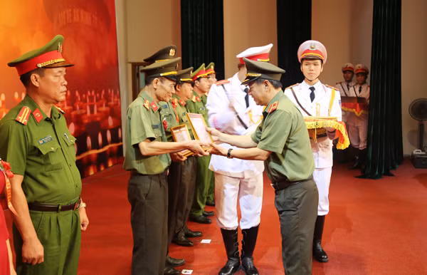 Đại tá Đào Thanh Hải trao Giấy khen của Giám đốc CATP cho 8 cá nhân đoạt giải trong cuộc thi viết “Tôn vinh những tấm gương anh hùng liệt sỹ, thương binh Công an Thủ đô”