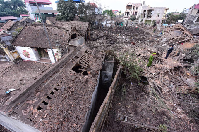 Cả một khu làng bị san phẳng sau vụ nổ, 2 người thiệt mạng và 7 người bị thương