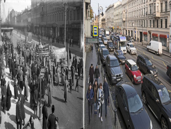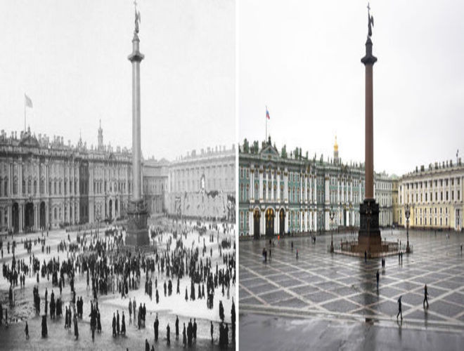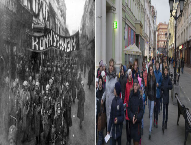 ANTD.VN - Cuộc Cách mạng Tháng Mười năm 1917 đã tác động vô cùng to lớn đến sự phát triển của nước Nga và toàn thể thế giới. Cuộc cách mạng này phân định ra bức tranh chính trị, kinh tế và xã hội của thế kỷ 20. Sau 100 năm, phóng viên hãng thông tấn AP tìm tòi, chụp lại những bức hình trùng địa điểm ở Nga, mang lại cho người xem cảm giác rất thú vị.