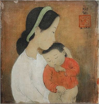 "Tình mẫu tử"-Tranh màu nước của Mai Trung Thứ