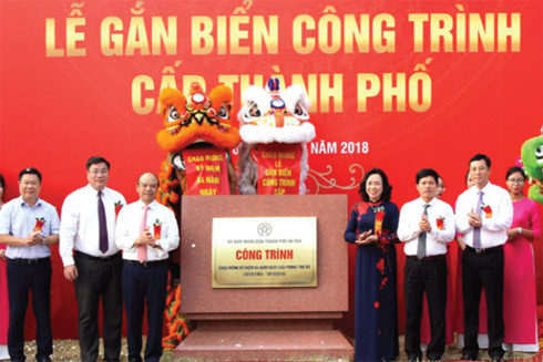Lãnh đạo thành phố Hà Nội và quận Hoàng Mai dự lễ gắn biển công trình cấp Thành phố đối với Trung tâm Văn hóa - Thể dục thể thao quận Hoàng Mai