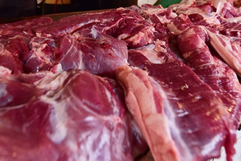 Thịt lợn khỏe mạnh có màu đỏ tươi tự nhiên, mỡ trắng sáng, sờ thịt săn chắc đàn hồi. Ảnh: Giang Huy.