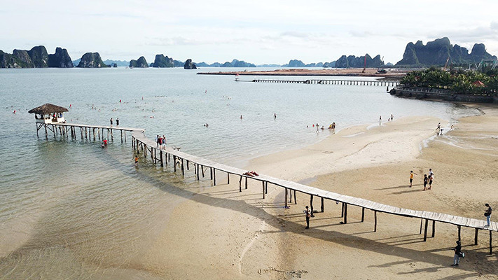 Đi dạo trên bãi cát mịn bên bờ biển hoang sơ, chan hòa với thiên nhiên, hay cây cầu gỗ mộc kéo dài từ đất liền ra biển, đầm mình trong làn nước mát trong veo tại Bãi Dài sẽ là trải nghiệm “phải thử”. Đây cũng là điểm check-in đẹp khó cưỡng được các tín đồ "sống ảo" rất yêu thích khi tới Vân Đồn.