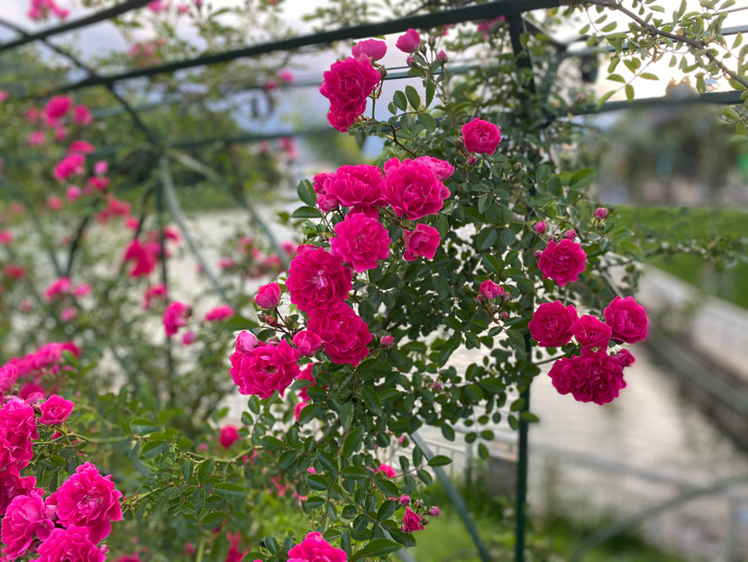 Nhưng có lẽ điểm nhấn ấn tượng nhất của thung lũng hoa hồng là những thảm hồng leo đỏ rực rỡ mà chỉ Sa Pa mới có. Loài hoa này được cho là có nguồn gốc từ Châu Âu, do người Pháp mang về vùng đất này cùng với hoa hồng cổ Sa Pa. Hoa hồng leo Sa Pa bông nhỏ chỉ khoảng 2-3 cm, kết dạng chùm, có khi cả trăm bông cùng nở trên một cành nhỏ xíu tạo nên những suối hoa, thác hoa trên các triền dốc hai bên đường tàu hỏa leo núi. Hồng leo đỏ thường ra hoa một lần duy nhất mỗi năm vào khoảng tháng 4, tháng 5, tạo nên một mùa du lịch Sa Pa ngắm hoa hồng nở thu hút rất đông du khách.