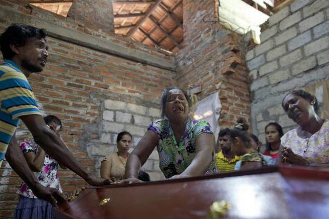 Nỗi đau của bà Lathina tại lễ tang cháu gái Sneha Savindi, 11 tuổi bị thiệt mạng trong vụ đánh bom hôm 21-4