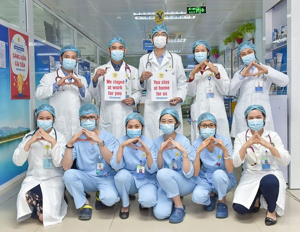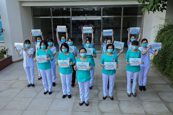 ANTD.VN - Đội ngũ cán bộ y bác sỹ, thầy thuốc ngành y tế tại 3 miền đất nước như: BV Dã chiến số 2 Quảng Ninh, BV Medlatec Hà Nội, BV Trường Đại học Y Dược Huế, BV Nhi đồng TP HCM, BV Đa khoa thành phố Cần thơ… đã hưởng ứng phát động phong trào thi đua và lan tỏa các thông điệp đến cộng đồng như “Chung sức, vững tâm vượt qua đại dịch”; “Chúng tôi đi làm vì bạn. Xin bạn hãy ở nhà vì chúng ta”, nhảy vũ điệu “Ghen Cô Vy”...