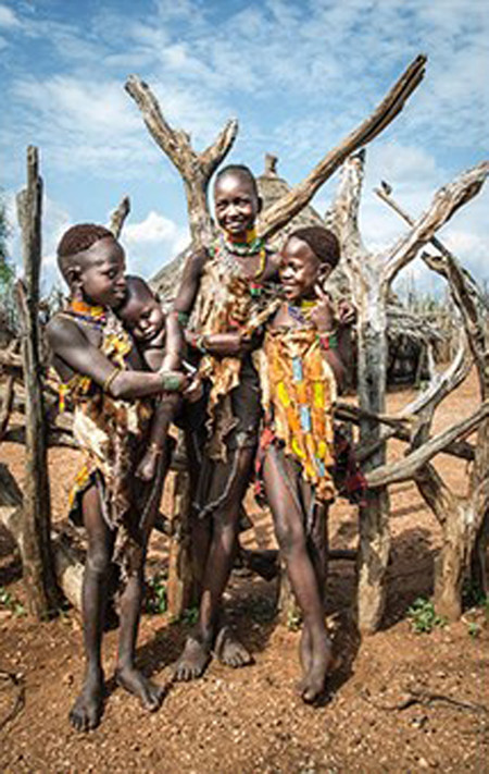 Các cô gái của bộ lạc Hamar được giao nhiệm vụ chăm sóc các em nhỏ từ khi còn rất trẻ. Họ có vẻ khá đoàn kết với nhau.