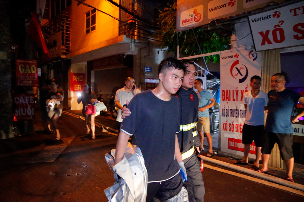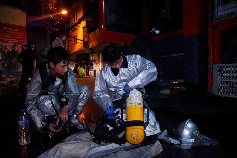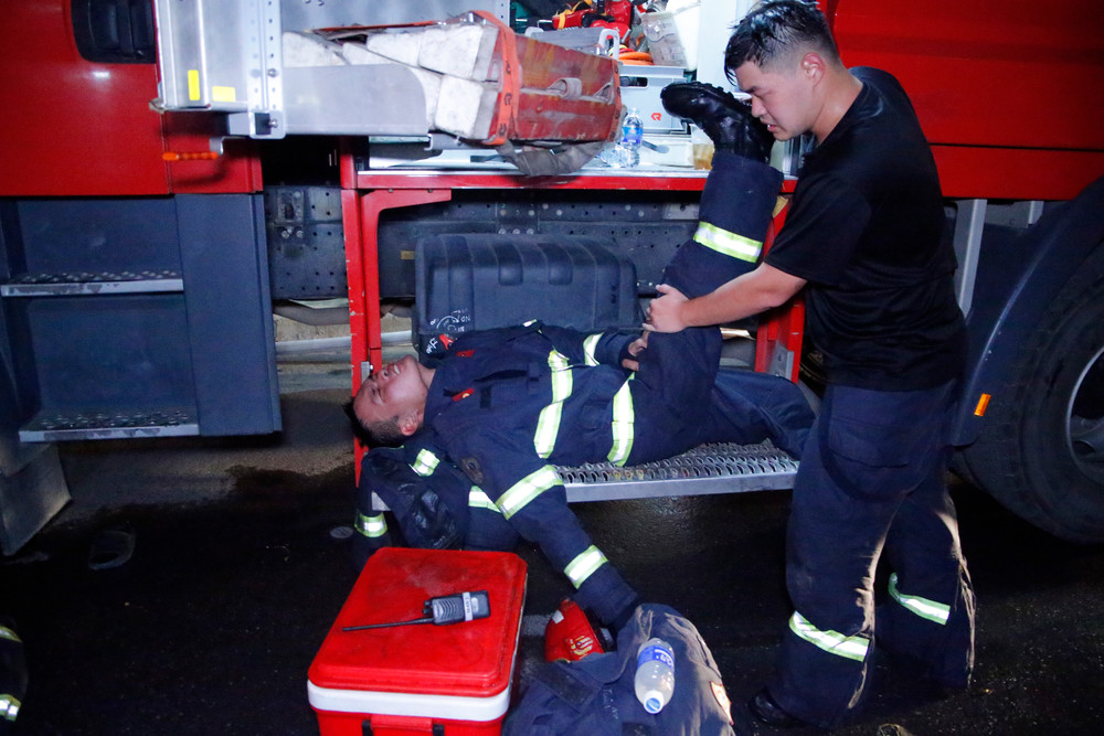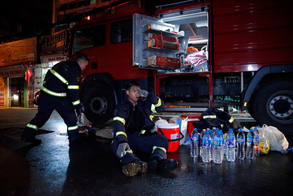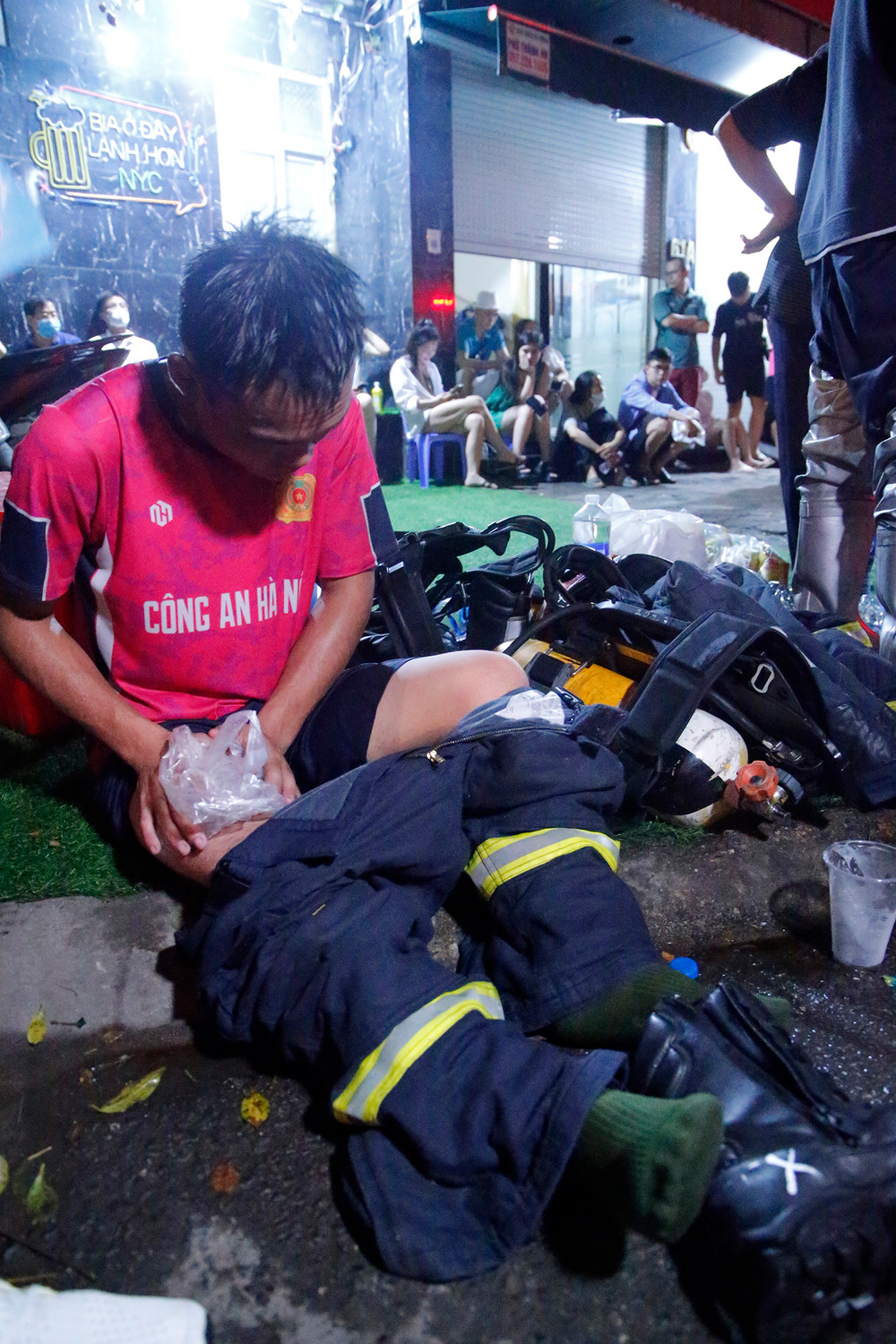 ANTD.VN - Liên tục trong gần 6 giờ, các chiến sĩ Cảnh sát PCCC&CNCH CATP Hà Nội thay phiên nhau "chiến đấu" với giặc lửa để dập tắt đám cháy, cứu những nạn nhân ra khỏi hiện trường và tìm kiếm những người không may tử vong. Trong khoảng thời gian đó, những chiến sĩ cảnh sát PCCC luôn tận tâm, hết mình vì công việc để làm sao dập tắt đám cháy, cứu người mắc kẹt, thời gian kéo dài khiến nhiều chiến sĩ kiệt sức.