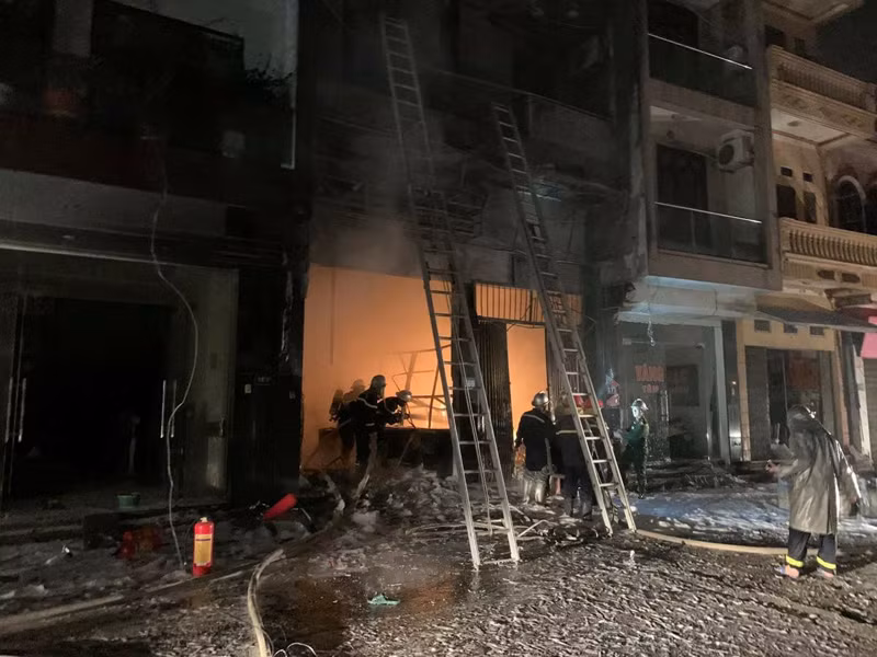 ANTD.VN - Lực lượng Cảnh sát Phòng cháy, chữa cháy và cứu nạn, cứu hộ- Công an huyện Đan Phượng, Hoài Đức và lực lượng cứu nạn, cứu hộ thuộc Công an thành phố Hà Nội đã kịp thời cứu nạn 5 người mắc kẹt tại đám cháy trong cửa hàng kinh doanh gas ở Đan Phượng trong đêm 14-10.