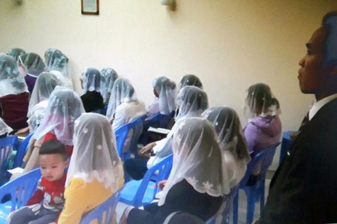 Nhóm người tụ tập sinh hoạt tôn giáo trái pháp luật tại xã Lâm Động, huyện Thủy Nguyên, Hải Phòng. (Nguồn: ANHP)
