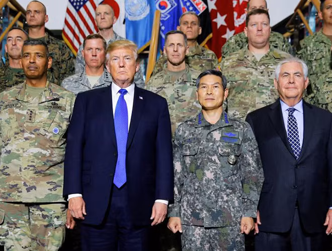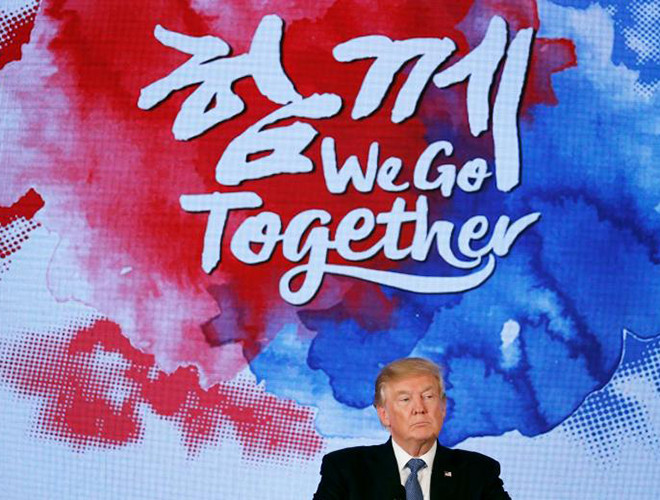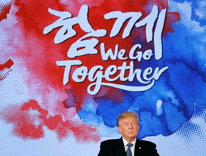 ANTD.VN - Tiếp tục chuyến công du châu Á, điểm dừng chân thứ 2 của Tổng thống Mỹ Donald Trump và phái đoàn là Hàn Quốc, một đồng minh thân cận. Đây là dịp quan trọng để Washington và Seoul thảo luận kỹ hơn về mối quan hệ chiến lược song phương, cũng như các phương án đối phó với mối đe dọa từ Triều Tiên.