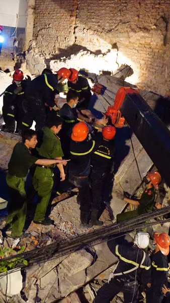 Lực lượng cứu nạn, cứu hộ khẩn trương đưa nạn nhân ra khỏi đống đổ nát