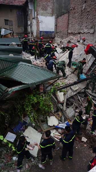Cùng với sự hỗ trợ nhịp nhàng của Công an Hà Nội, Bộ Tư lệnh Thủ đô và các đơn vị chức năng, lực lượng cứu hộ, cứu nạn đã cứu giúp 9 người, trong đó có cả cụ già và trẻ nhỏ bị mắc kẹt trong đống đổ nát thoát khỏi nguy hiểm.