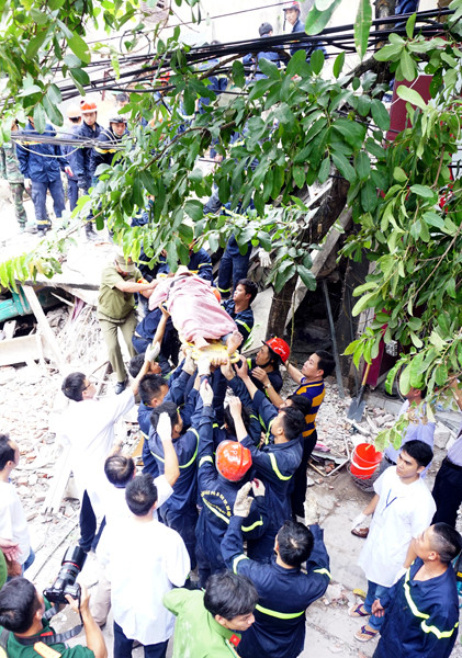 Sau nhiều giờ đồng hồ vất vả, lực lượng cứu nạn đã đưa được nạn nhân cuối cùng ra khỏi ngôi nhà bị sâp