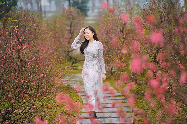 Vinhomes Ocean Park càng được tô điểm rực rỡ dưới tiết trời xuân bởi sắc áo dài truyền thống và nét rạng rỡ của của khách tham quan