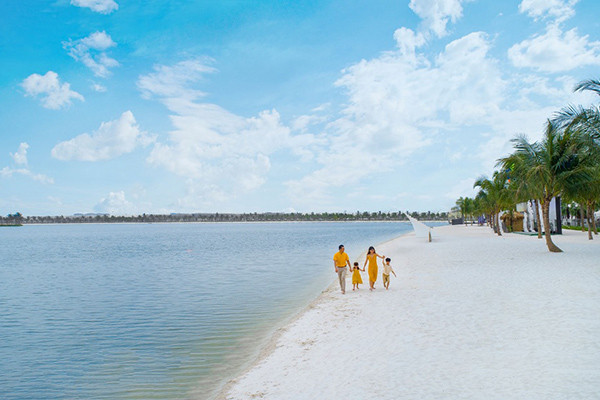 Cát trắng ở đây được chúng tôi kỳ công vận chuyển từ vịnh biển Nha Trang, sau đó sàng sẩy nhiều lớp đến khi có được màu cát trắng tự nhiên để đảm bảo cảnh quan như biển thật. Hàng trăm cây dừa, hoa và cây xanh được ươm trồng ngay từ khi bắt đầu khởi công dự án, chỉ chờ hạ tầng hoàn thiện là có ngay để phủ xanh quanh hồ. Dưới lòng hồ là hơn 50 tấn cá rất đa dạng về chủng loại để tạo nên một hệ sinh thái đa dạng, đầy sức sống cho khu vực hồ và cả dự án.