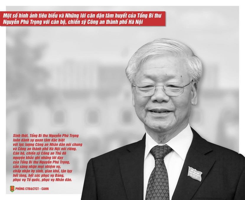 ANTD.VN -Vĩnh biệt một nhân cách lớn, một người cộng sản kiên trung, một nhà lãnh đạo kiệt xuất của dân tộc Việt Nam, cán bộ, chiến sĩ Công an Thủ đô nguyện mãi khắc ghi lời dạy của đồng chí Tổng Bí thư Nguyễn Phú Trọng: CBCS Công an Hà Nội phải nỗ lực rèn luyện và phấn đấu lập nhiều thành tích xuất sắc hơn nữa trong sự nghiệp bảo vệ an ninh Tổ quốc, mãi mãi xứng đáng với truyền thống vẻ vang, xứng đáng với lòng yêu mến, tin cậy của Đảng, Nhà nước và nhân dân”.