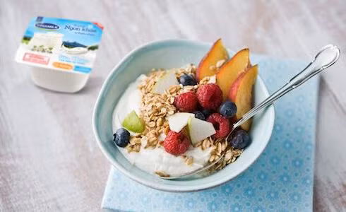 Sữa chua có thể trộn với ngũ cốc hoặc các loại hạt như hạt điều, óc chó, hạnh nhân, macca để thành món ăn giảm cân vừa đủ chất, vừa ngon miệng, vừa tiện lợi. Ngũ cốc kết hợp cùng sữa chua là lựa chọn hoàn hảo cho bữa sáng đơn giản mà giàu năng lượng. Khi ăn kèm hai thứ, cảm giác khô và giòn tan của ngũ cốc hòa vào sự mịn màng của sữa chua tạo nên nét tương phản thú vị. Sữa chua còn có thể trộn với yến mạch, trứng gà, bơ, mật ong, bột quế và chuối tiêu dầm nát rồi nướng ở nhiệt độ thích hợp. Món bánh chuối yến mạch này là món ăn giảm cân vô cùng hiệu quả. Bên cạnh đó cũng có thể ăn kèm sữa chua với một số loại bánh như bánh chuối đốt rượu hoặc chuối pan cake, bánh táo, bánh khoai lang, bánh cà phê mật ong,… Các loại bánh này phải được nướng nóng giòn, sau đó tưới đều sữa chua lên mặt bánh hoặc để bên cạnh ăn chung. Sự giòn tan, béo ngậy của bánh kết hợp với nét thanh mát của sữa chua làm nên sức cuốn hút của hương và vị.