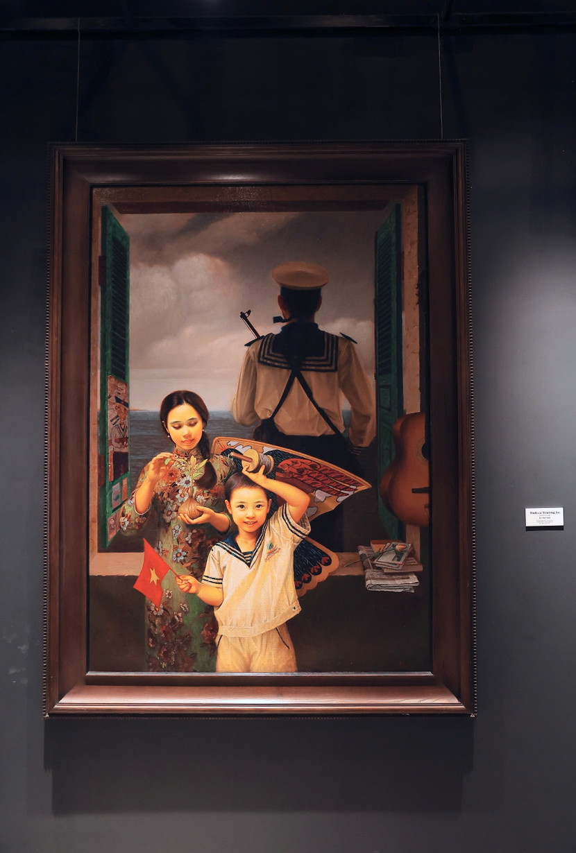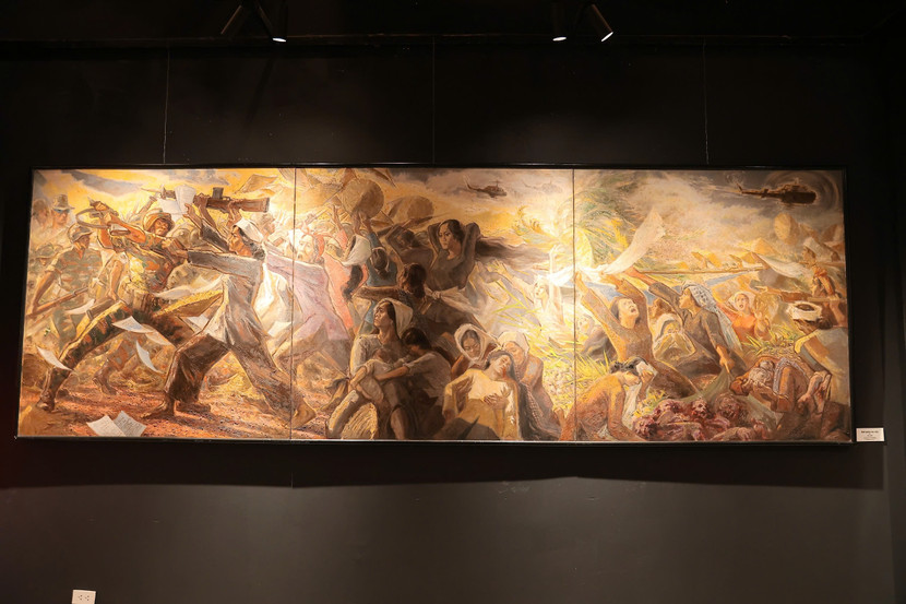 Triển lãm quy tụ các tác phẩm tiêu biểu của nhiều họa sĩ tên tuổi lớn trong mỹ thuật Việt Nam hiện đại như: như bức sơn mài "Giải phóng Buôn Ma Thuột" của họa sỹ Trần Hữu Chất, bức sơn dầu ""Điện Biên Phủ trên không"của Nguyễn Thuận, "Xe chở tên lửa qua cầu Long Biên" của Văn Đa, tranh bột màu "Trăng non" của họa sỹ Mai Văn Hiến, tác phẩm “Bữa cơm giữa rừng”, bột màu của họa sĩ Phạm Ngọc Liệu, tác phẩm “Khúc khải hoàn”, acrylic của họa sĩ Nguyến Thế Hữu, tác phẩm “Đặc công rừng sác”, sơn dầu của tác giả Trịnh Bá Quát, tác phẩm “Tàu cứu hộ Trường Sa”, sơn dầu của tác giả Ngân Chài, ...