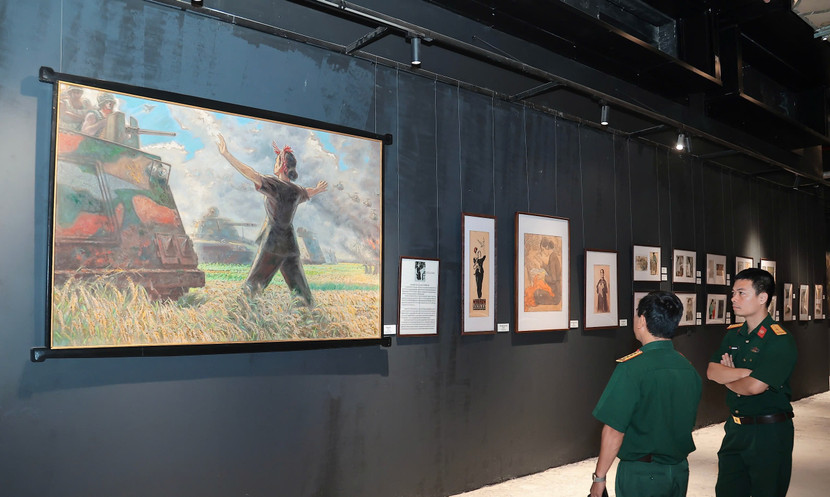 Nổi bật trong các tác phẩm trưng bày tại triển lãm lần này, có sưu tập các tác phẩm sơn dầu sáng tác về giai đoạn kháng chiến chống Pháp, chống Mỹ của Đại tá Quân đội, họa sĩ Lê Huy Toàn; sưu tập các ký hoạ vẽ tại chiến trường trong kháng chiến chống Mỹ với chất liệu màu nước, chì, bút sắt... tôn vinh hàng triệu những con người hy sinh thầm lặng: chiến sĩ đặc công, nữ du kích, nữ dân quân, bà má dân tộc, anh nuôi… của họa sĩ Lê Lam, họa sĩ Phạm Ngọc Liệu, họa sĩ Phan Oánh.