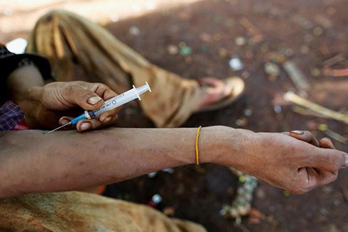 Thông thường, HIV lây truyền qua sử dụng chung bơm kim tiêm bị nhiễm virus không được diệt trùng đúng cách, đặc biệt ở người nghiện chích ma túy.
