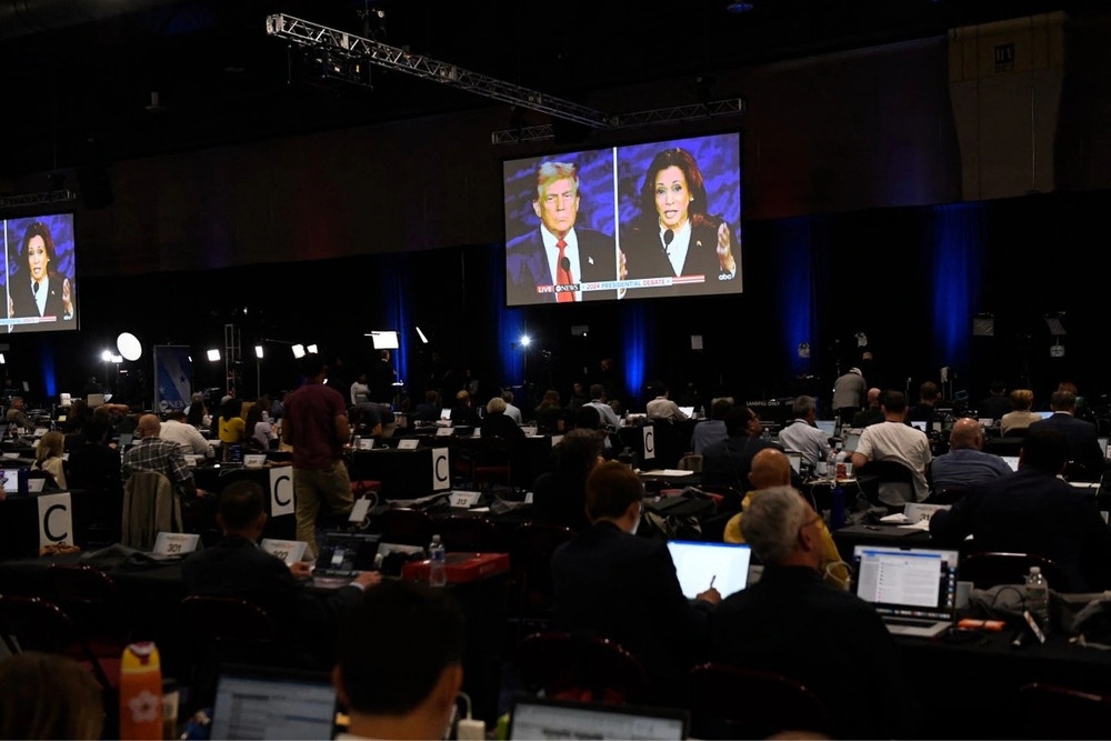 ANTD.VN - Tối 10-9 (theo giờ Mỹ), Phó Tổng thống Mỹ Kamala Harris - ứng cử viên tổng thống của đảng Dân chủ và cựu Tổng thống Donald Trump - ứng cử viên tổng thống của đảng Cộng hòa, đã tiến hành cuộc tranh luận trực tiếp đầu tiên tại Trung tâm Hiến pháp Quốc gia (NCC) ở thành phố Philadelphia thuộc bang Pennsylvania.