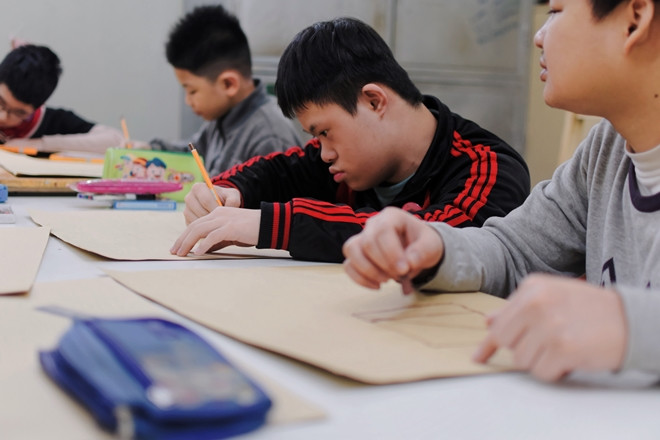Điểm nhấn của triển lãm lần này chính là những tác phẩm vô cùng đặc biệt do các em nhỏ có hoàn cảnh khó khăn của Trung tâm Phúc Tuệ tự tay thể hiện. 7 bức tranh là 7 câu chuyện, 7 ước mơ luôn toả sáng rực rỡ trong tâm hồn trong sáng, ngây thơ của các em.