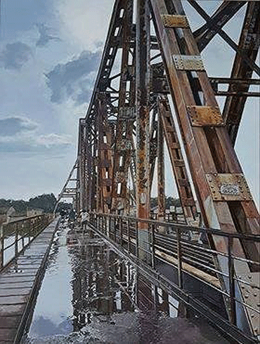 Từng chi tiết trên cây cầu Long Biên được tả thực tới mức, người xem dường như có cảm giác có thể chạm tay vào