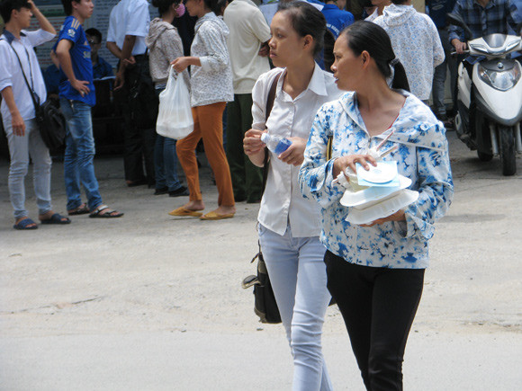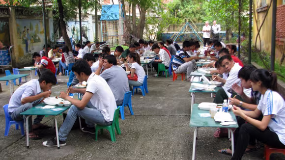 phường Kim Giang cho các sĩ tử ngồi ăn trưa