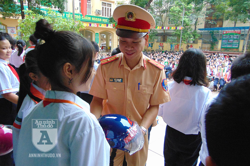 Bên cạnh việc tuyên truyền, tại sự kiện, đại diện Đội CSGT, TT và Đội CSGT số 4 còn trao tặng mũ bảo hiểm cho các em học sinh, như một sự động viên, khích lệ các em tuân thủ việc đội mũ bảo hiểm khi tham gia giao thông.