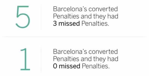 Barcelona ghi 5 bàn thắng từ chấm phạt 11m so với 3 của Real Madrid, nhưng nhà ĐKVĐ La Liga bỏ lỡ 3 tình huống hỏng ăn trên chấm phạt đền, 2 trong số đó từ đôi chân của Messi.