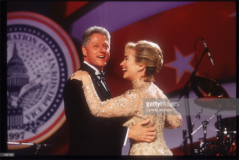 Tổng thống Bill Clinton và phu nhân trong một bữa tiệc khiêu vũ vào ngày nhậm chức năm 1997