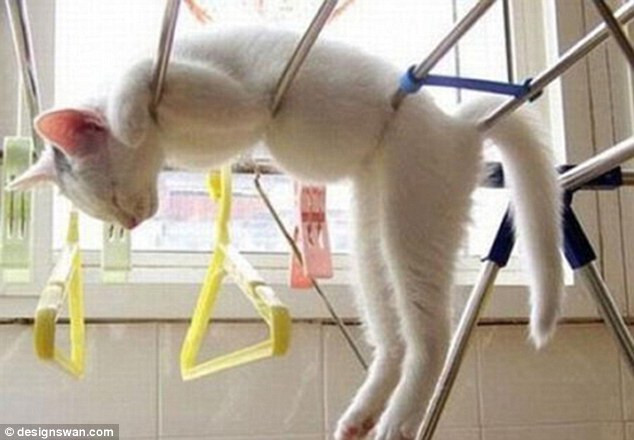 Những chú mèo có thể ngủ ngon lành dù đó có thể là giá phơi quần áo, trong máy giặt, thậm chí ở cả ban công nguy hiểm. Không chỉ ngủ ở bất kỳ đâu, những tư thế ngủ "khó đỡ" cũng tạo thành bộ sưu tập ảnh ngộ nghĩnh của riêng loài vật này.