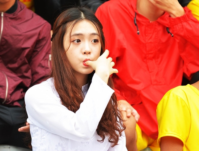 Những vẻ đẹp tinh khôi "đốn tim" CĐV trên khán đài sân Tây Hồ