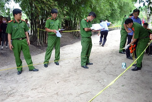 Cảnh sát khám nghiệm hiện trường vụ án mạng hôm 24/6. Ảnh: Hồng Tuyết.