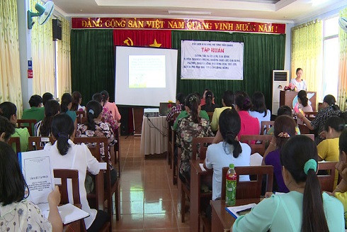 Một buổi tập huấn công tác phòng, chống bạo lực gia đình cho hội viên do Hội Liên hiệp phụ nữ Tiền Giang tổ chức.