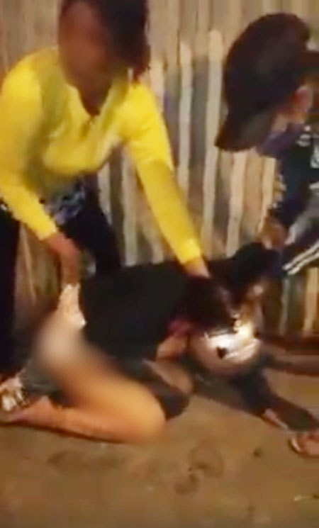 Nhân tình của người chồng bị vợ và mẹ vợ xông vào tấn công trước mặt bao người. Cô này giãy giụa, cố thoát khỏi vòng vây và chạy thẳng vào một nhà dân gần đó.