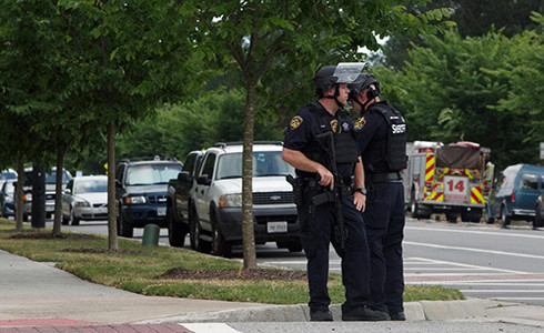 Cảnh sát đứng bên ngoài hiện trường, nơi xảy ra vụ thảm sát chiều 31-5 tại Mỹ.