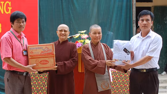 Rất nhanh chóng một khoản kinh phí bao gồm 80 triệu đồng làm sân chơi và 130 triệu đồng tiền quà, lương thực, thực phẩm được các thầy chuyển ngay cho ngôi trường nghèo ấy. Khỏi phải nói là thầy trò của trường Tiểu học Tát Ngà đã mừng rỡ thế nào khi đón nhận món quà quá đỗi bất ngờ kia. Một kế hoạch chi tiết sửa sang trường lớp được vạch ra và gần như ngay tức khắc vật liệu được mua về đáp ứng những nguyện vọng chính đáng của các em nhỏ. Và đúng ngày khai giảng, những vị tu hành giàu lòng nhân ái đã cùng những người lính của Công an Hà Nội quay trở lại ngôi trường “cơ duyên” ấy để tiếp tục trao tặng những món quà khác giúp thầy trò liên trường xã Tát Ngà có thêm động lực bước vào năm học.