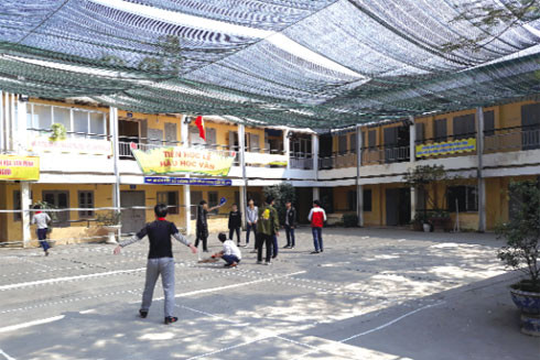 Cô giáo Hiệu trưởng trường THCS Thịnh Liệt Bùi Hoàng Yến tâm sự, sỹ số toàn trường trên 500 em học sinh, nhưng chỉ vẻn vẹn có 10 phòng học. Thế nên nhà trường phải trưng dụng cả nhà văn hóa của phường để dạy chữ các con. Phòng làm việc riêng, phòng họp chung, phòng hội đồng… là những khái niệm quá xa xỉ. Cảnh cô giáo phải chấm bài ngoài hành lang là chuyện bình thường.