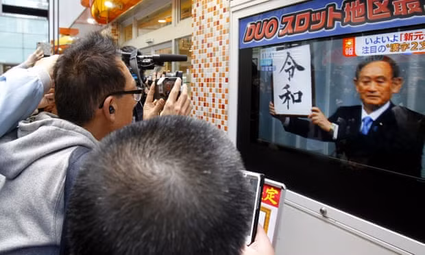 Người dân Nhật Bản theo dõi sự kiện Chánh văn phòng Nội các Yoshihide Suga công bố niên hiệu mới