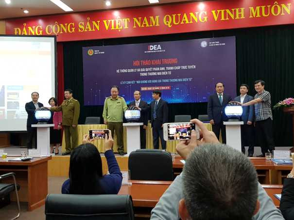 Các đại biểu khai trương hệ thống quản lý và giải quyết khiếu nại, tranh chấp trực tuyến trong thương mại điện tử