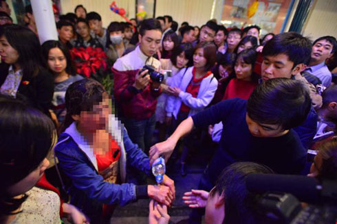 Người đi đường dùng nước làm dịu vết bỏng giúp người phụ nữ.