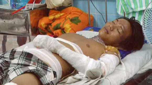 Anh Duy và Quang bị bỏng nặng đang cấp cứu tại bệnh viện đa khoa tỉnh.