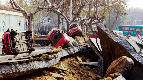 Vào lúc 3h sáng 22-11, đường ống dẫn dầu chôn ngầm dưới mặt đất được phát hiện bị vỡ. Mặc dù chỉ 15 phút sau, đường ống được đóng, nhưng dầu đã tràn lênh láng khoảng 1.000m2 mặt đường. Một phần dầu thô theo đường ống dẫn nước mưa tràn vào vịnh Giao Châu, rồi tràn ra biển Hoàng Hải, gây ô nhiễm vùng biển khu vực này. Đến 10h trưa, trong lúc các công nhân đang sửa chữa, đường ống dầu đã bị bắt lửa gây nổ. Cùng lúc đó, số lượng dầu tràn ra biển cũng cháy. Một chiếc xe buýt đi gần hiện trường vụ nổ đã bị sức ép gây lật khiến toàn bộ hành khách trên xe bị thương. Học sinh tại một ngôi trường gần đó cũng phải sơ tán toàn bộ. Những bức ảnh chụp tại hiện trường cho thấy, mặt đường bị nứt toác, hàng loạt xe bị hư hại, cửa kính các cửa hàng vỡ vụn, cột khói đen khổng lồ bốc lên trời ngùn ngụt. Một nhân chứng cho biết tưởng như có trận động đất khi vụ nổ xảy ra.