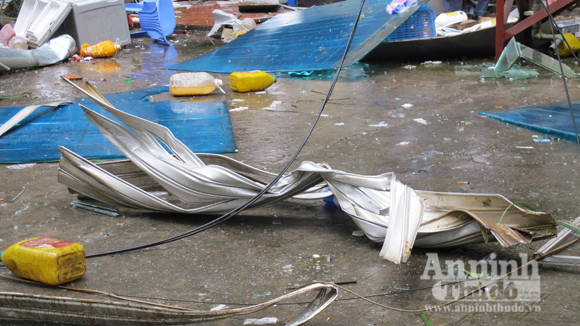 “Rất may, vụ nổ xảy ra vào lúc rạng sáng nên không có thực khách ngồi nhậu, hơn nữa đoạn phố Vĩnh Phúc xung quanh đây vốn là cái chợ cóc khi họp rất đông người, nếu không hậu quả thật khôn lường”- anh Phạm Văn Tuấn, chồng chị Đức vừa nói, vừa chỉ một tấm biển khung nhôm sắt méo mó bay sát cửa nhà mình cho phóng viên thấy.