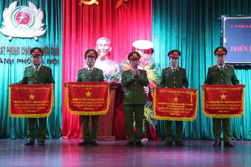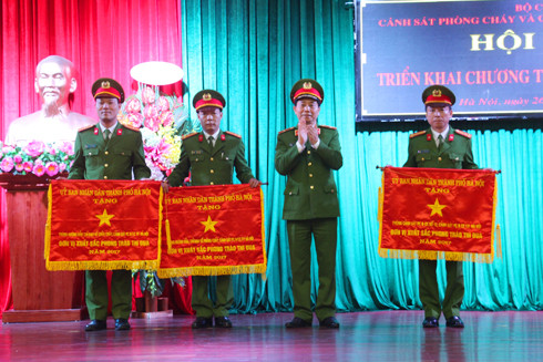 Nhân dịp này, UBND - TP Hà Nội và Bộ Công an đã trao tặng 7 Cờ thi đua cho các tập thể có nhiều thành tích xuất sắc trong công tác PCCC năm 2017.