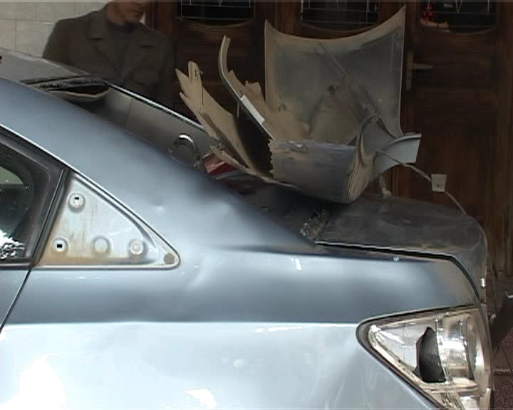 Chiếc xe bị hư hại tại hiện trường vụ nổ