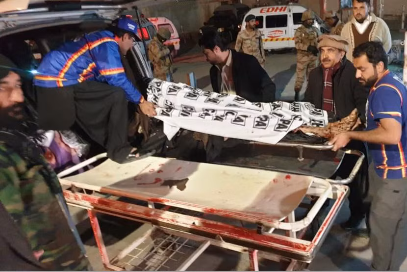 Nhân viên bệnh viện di chuyển thi thể các nạn nhân thiệt mạng trong vụ nổ