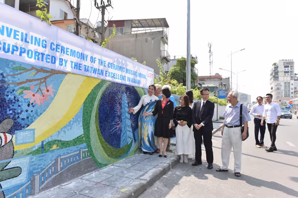 Đoạn tranh gốm do tổ chức Taiwan Excellence (Giải thưởng Sản phẩm Đài Loan cao cấp) phối hợp cùng công ty Nghệ thuật Tân Hà Nội thực hiện.